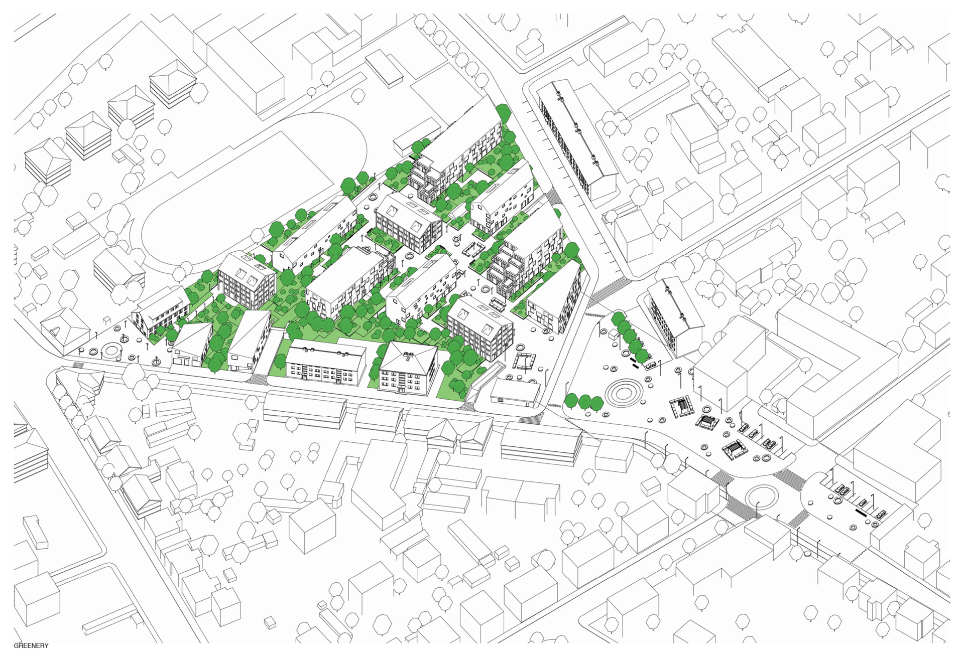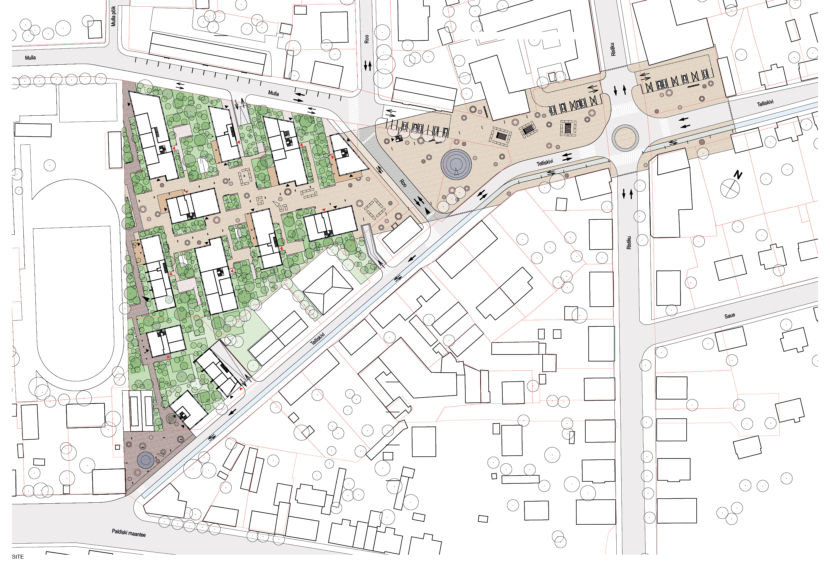 Traffic is designed from the perspective of pedestrians and cyclists – priority is given to soft mobility, and parking is placed underground to leave the ground level to people and greenery. Varied building types and human-scale streetscapes bring living, working and leisure together into one coherent quarter that continues the natural urban life of the Telliskivi area in a new quality.