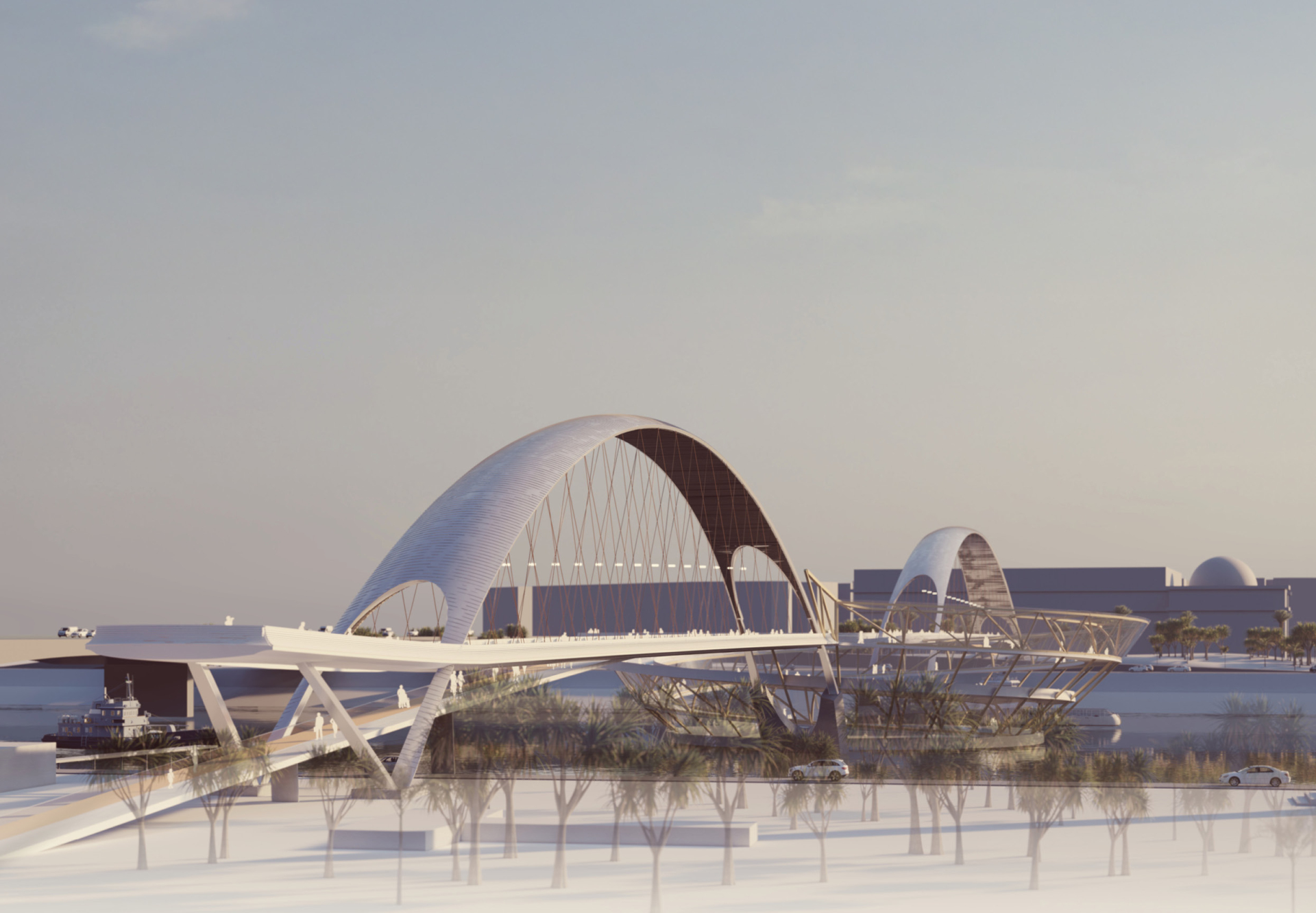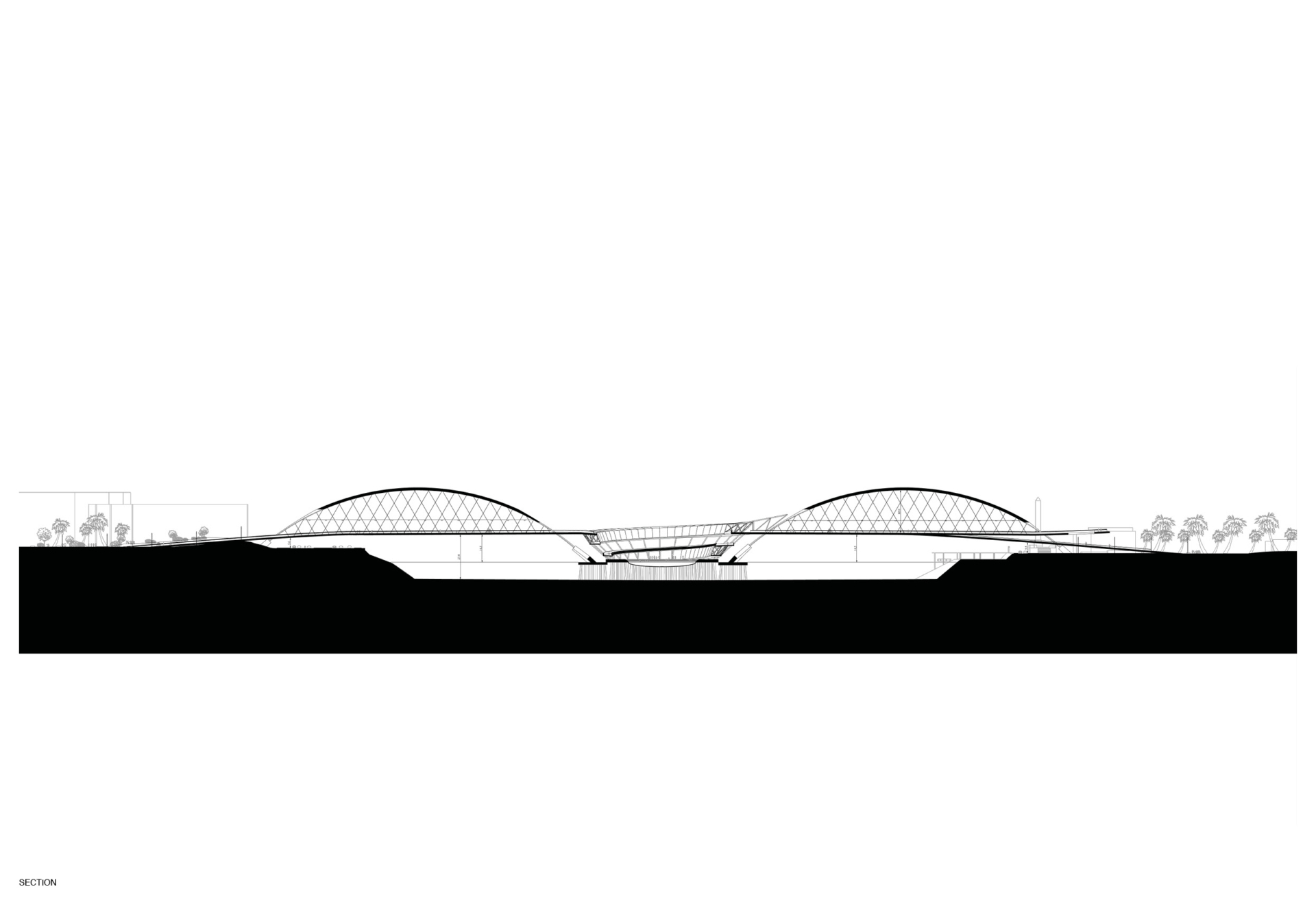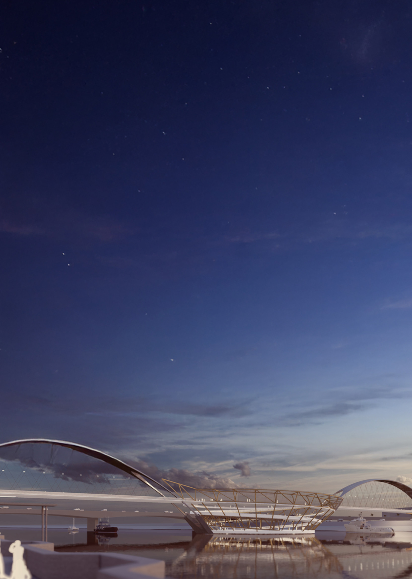 The aim of a bridge is to give new place for everyday activities throughout the journey. The deck becomes a linear plaza with two pace options. One is to use fast line as a quick crossing and the other gives an opportunity to have a stroll by going up and down the helix down to the Nile. The fast line gives easy access also for cyclists keeping in mind that new modes of movement have to be implemented to aim towards a more sustainable future.