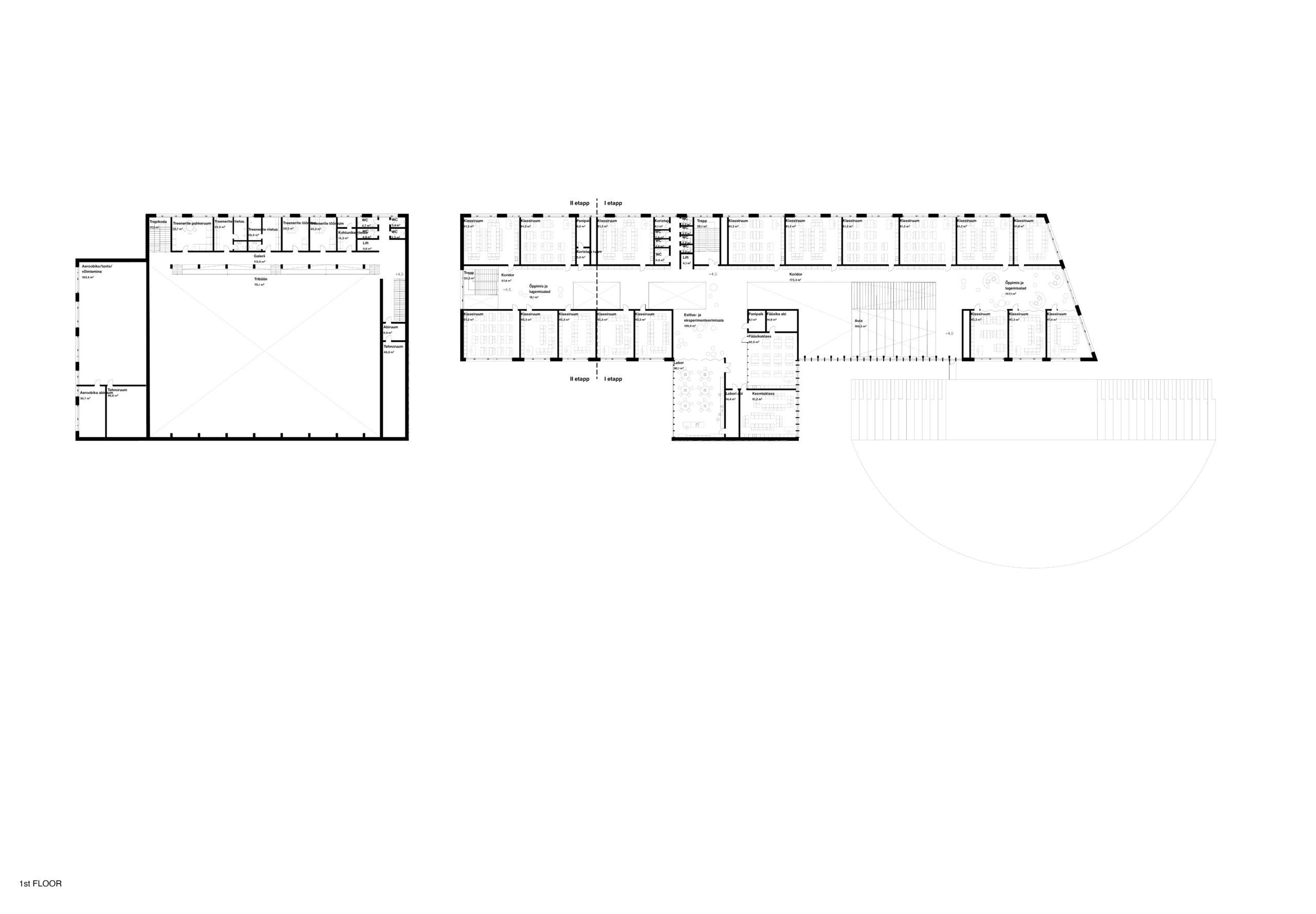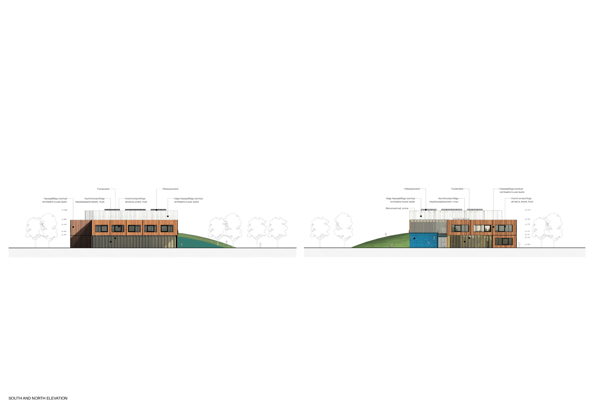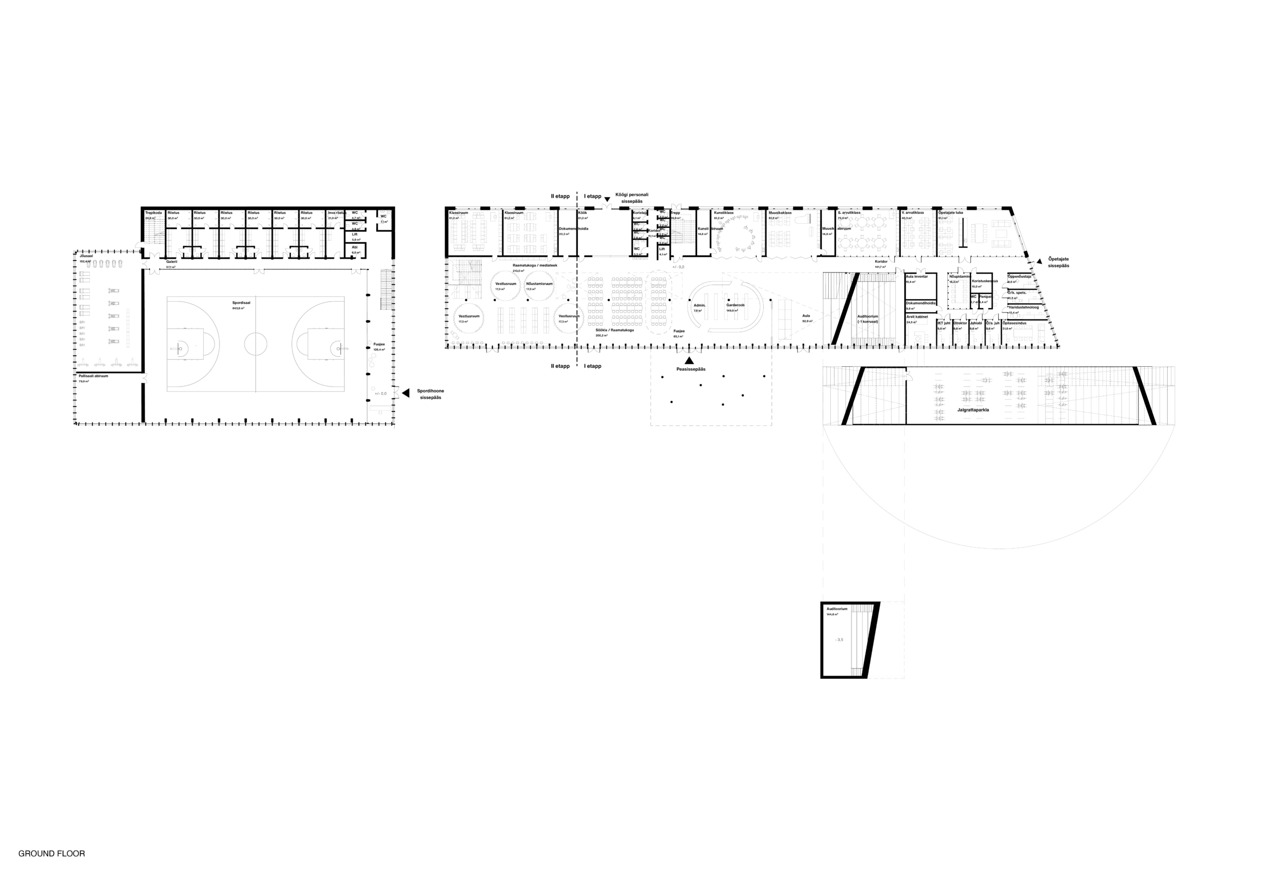 The new academic and sports buildings of Rae Upper Secondary School form a clear and compact educational campus where indoor and outdoor spaces work as a unified whole. The placement of the buildings links Lehmja oak grove, the stone burial site and the new school park into a single green belt that shields the school from traffic noise and opens the outdoor areas to the southern and evening sun. The diverse schoolyard, forum and flag square are designed for outdoor learning, everyday breaks as well as ceremonial events.