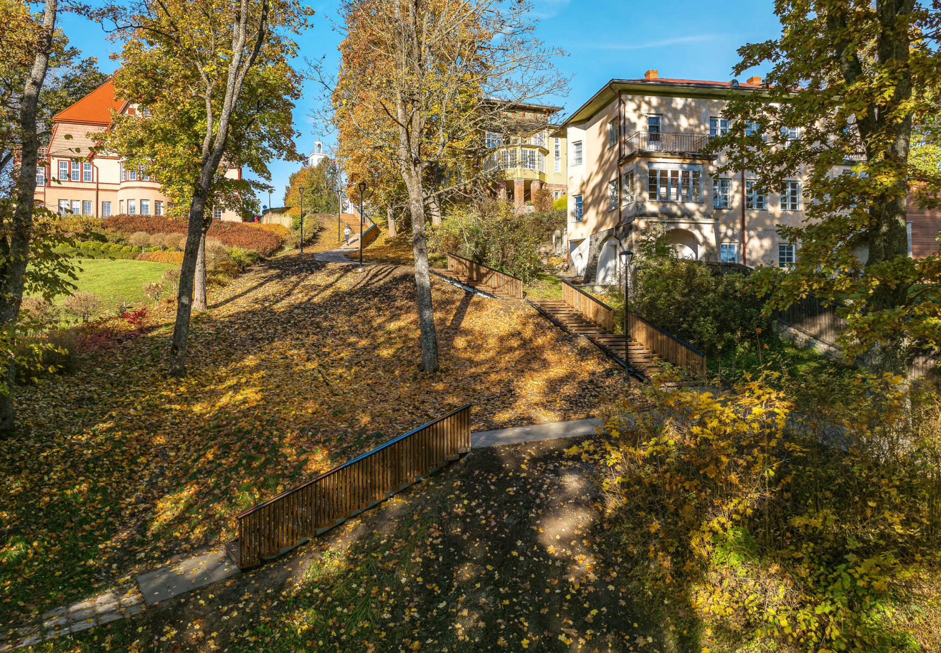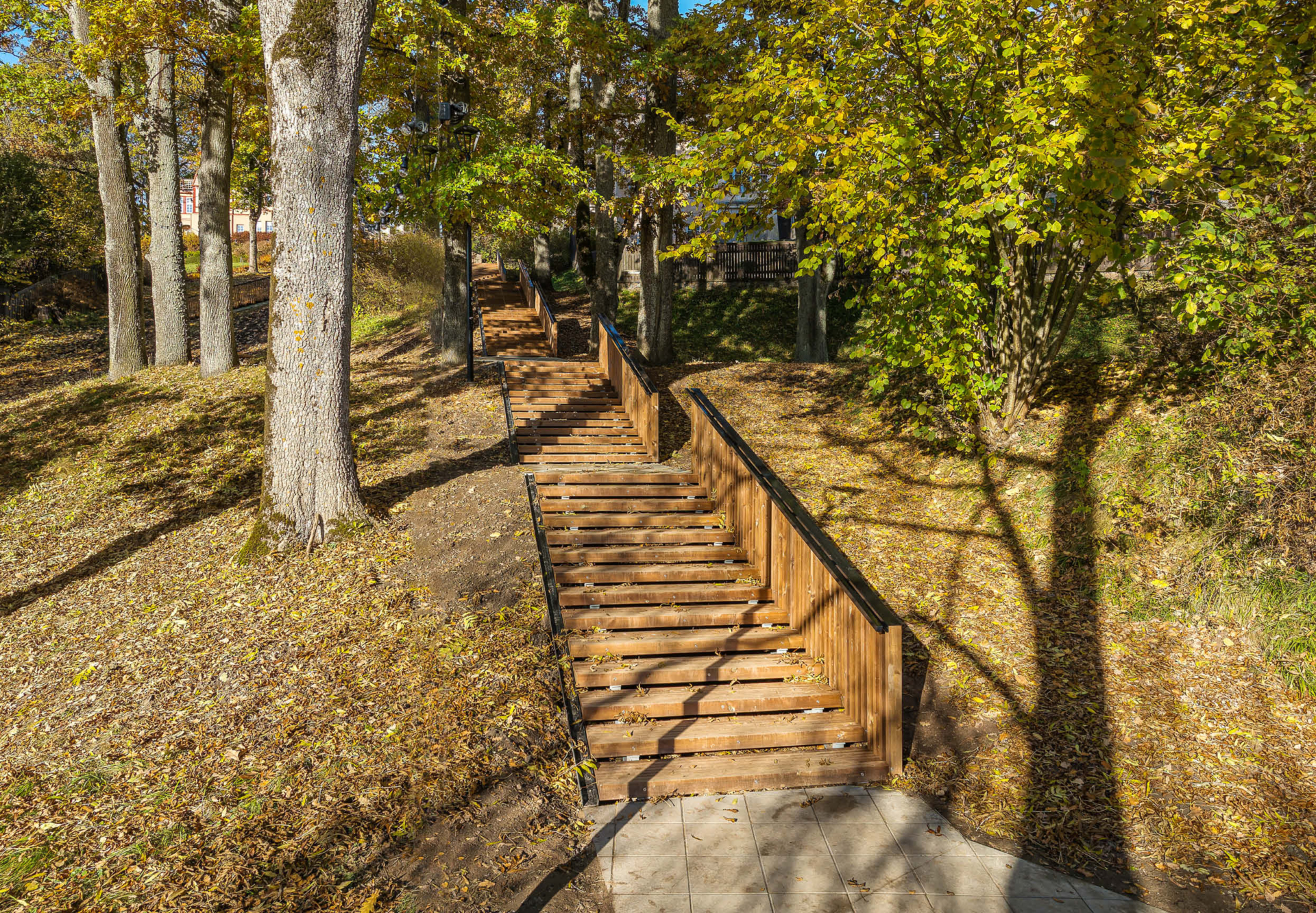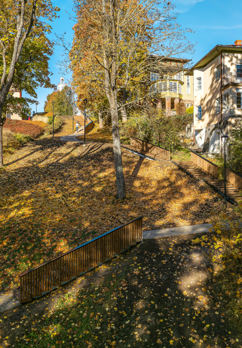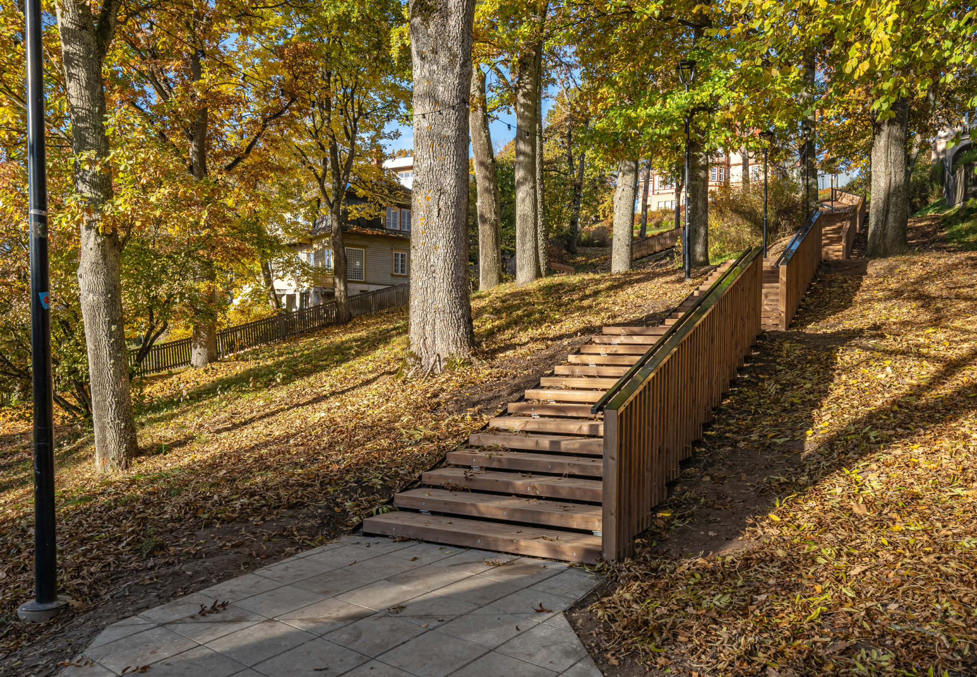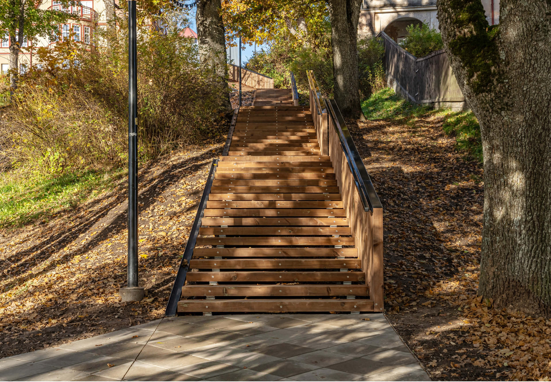 Viljandi’s Trepimäe Street was created over a century ago to connect the medieval Upper Town with Lake Viljandi. Spanning a 30-metre drop over 170 metres, it comprises six timber stairways—166 steps in total—and doubles as the course of the Trepimäe Run, where those 166 steps provide a consistent benchmark over time.