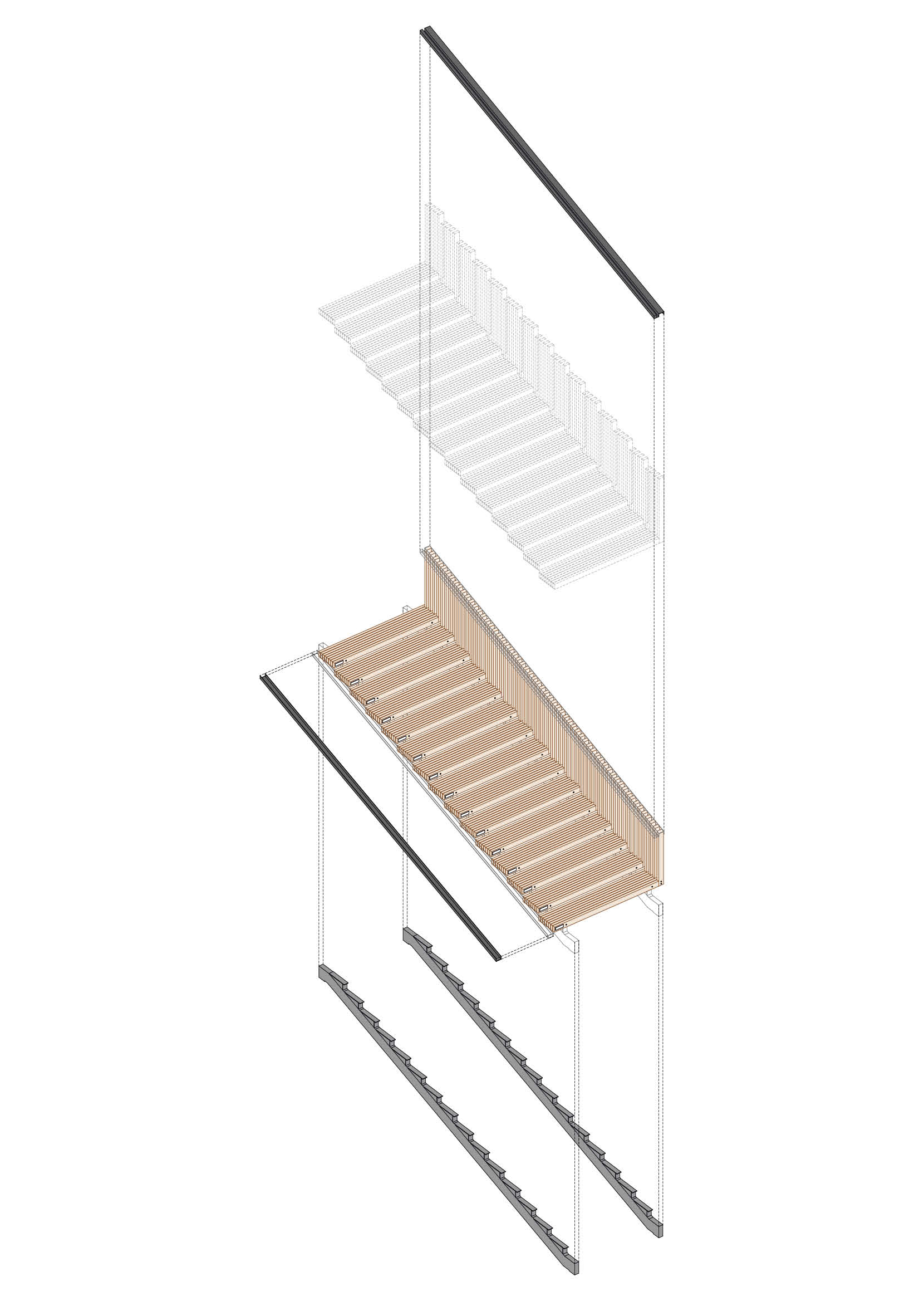The delivered first stage covers the stair section: new steel structures on existing foundations with prefabricated timber treads, chosen for build quality, durability and minimal on-site disruption. Material strength, tactile qualities and heavy year-round use guided the design. Community backing was key: a civic initiative helped fund the refurbishment, and donors are acknowledged with nameplates on the steps.